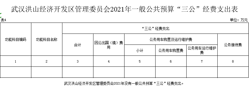 名 称:武汉洪山经济开发区管理委员会2021年一般公共预算“三公”经费支出表