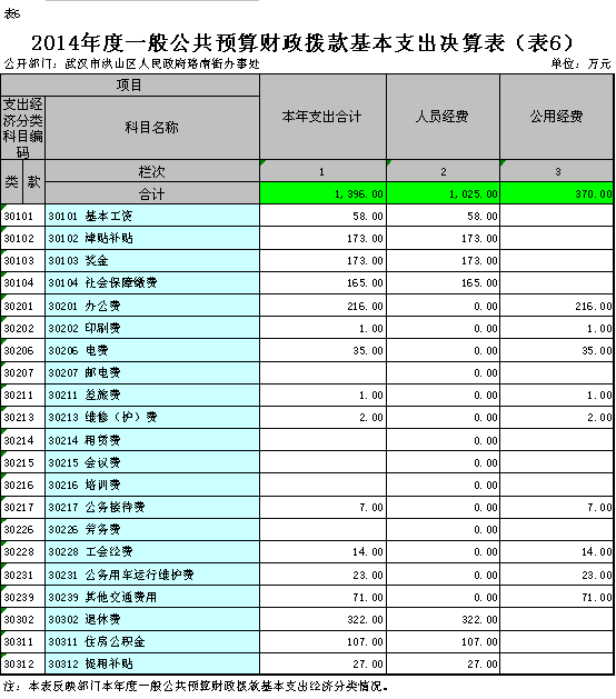 六、2014年度一般公共预算财政拨款基本支出决算表(表6)