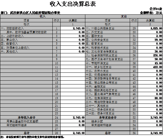 2016年度收入总计2745万元,支出总计2745万元。与2015年相比,收、支总计各增加440万元,增长19%,主要原因是公共安全支出、城乡社区管理经费、住房保障支出提高等。