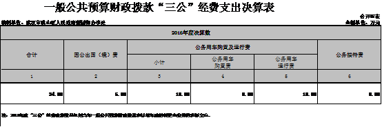 2016年度“三公”经费财政拨款年度预算数为24万元,支出决算为24万元,为预算的100%,其中: