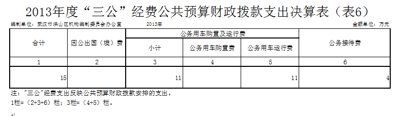 2013年度“三公”经费财政拨款支出决算为15万元。