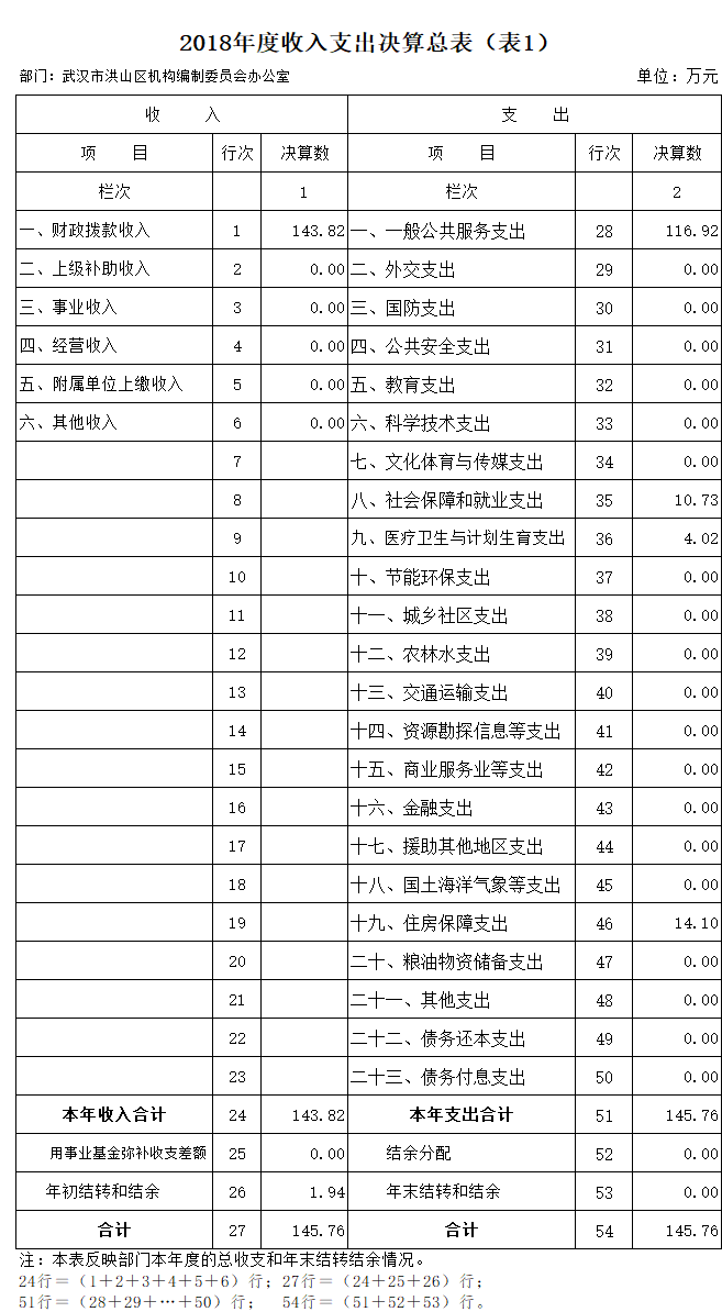 2018年度收、支总计145.76万元。与2017年相比,收、支总计各减少11.24万元,降低7.16%,主要原因是退休人员异动调整,基本支出减少。
