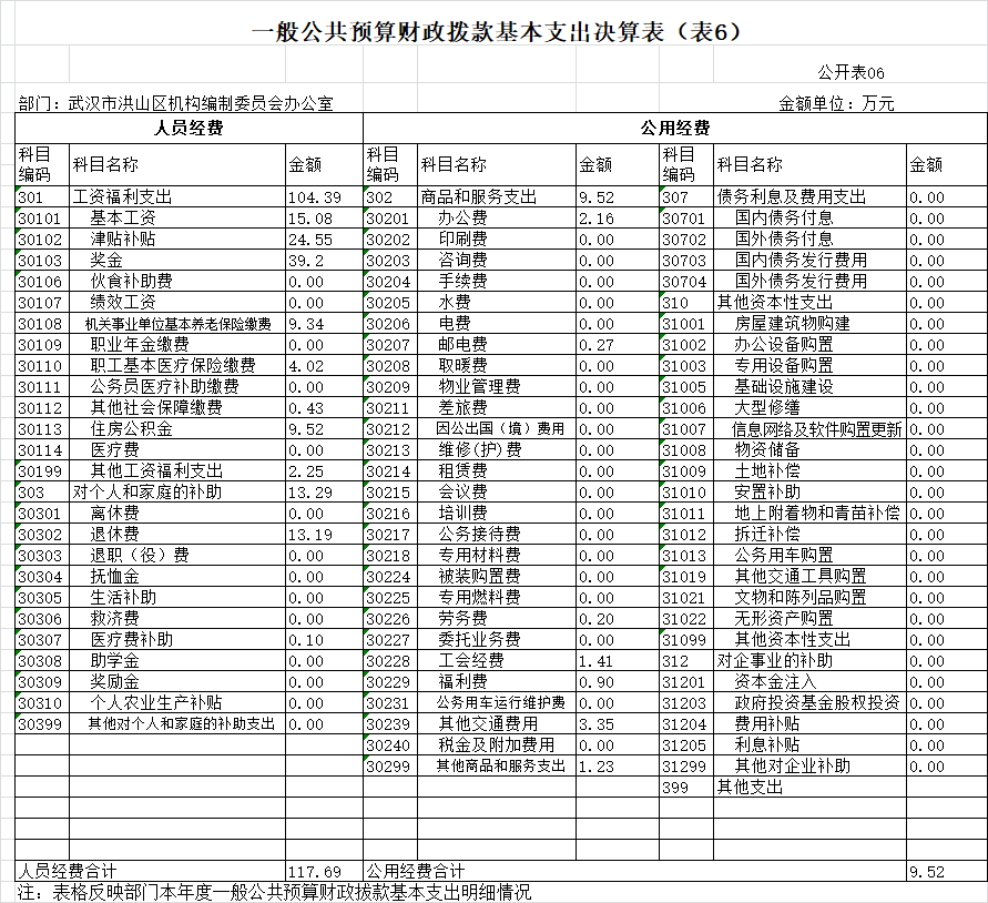 六、一般公共预算财政拨款基本支出决算表(表6)