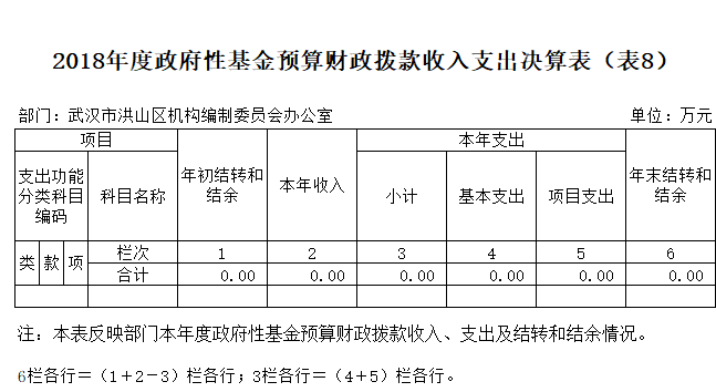 2018年政府性基金预算财政拨款上年结转和结余0.00万元,本年收入0.00‐万元,本年支出0.00‐万元,年末结转和结余0.00‐万元。