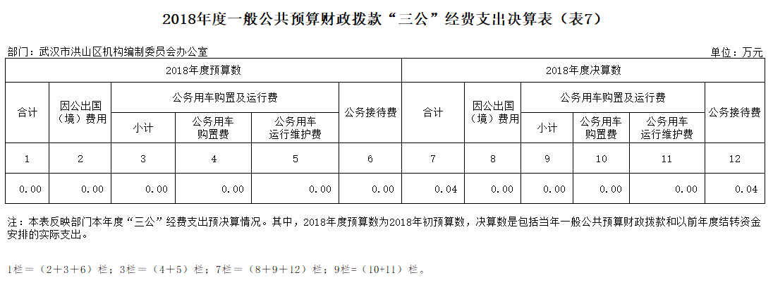 2018度“三公”经费财政拨款年度预算数为0万元,支出决算为0.04万元,为预算的0%,其中: