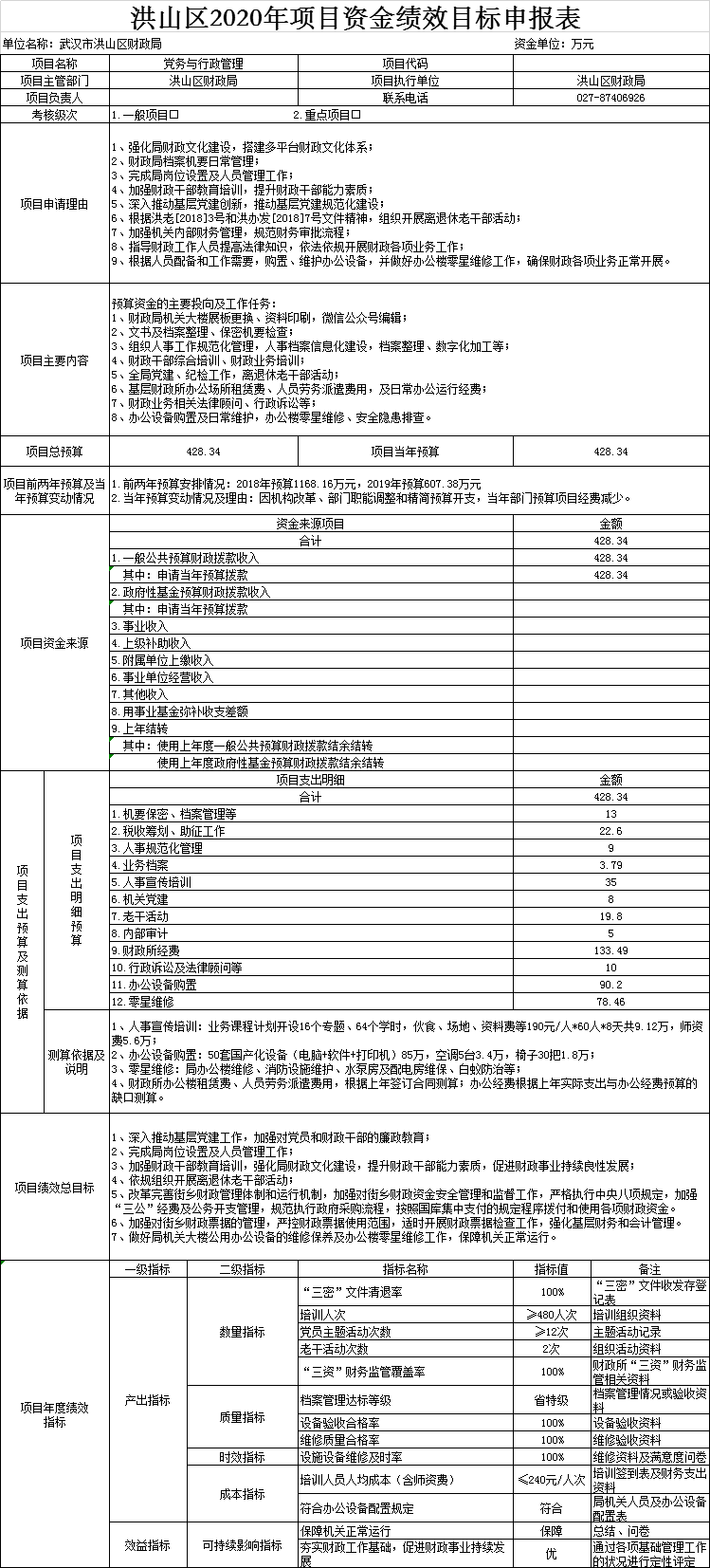 名 称:党务与行政管理项目资金绩效目标表