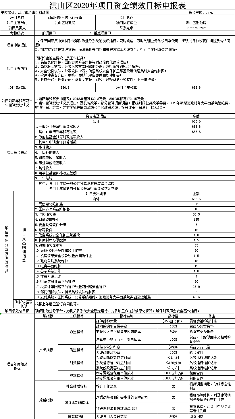 名 称:财政网络系统运行保障项目资金绩效目标表