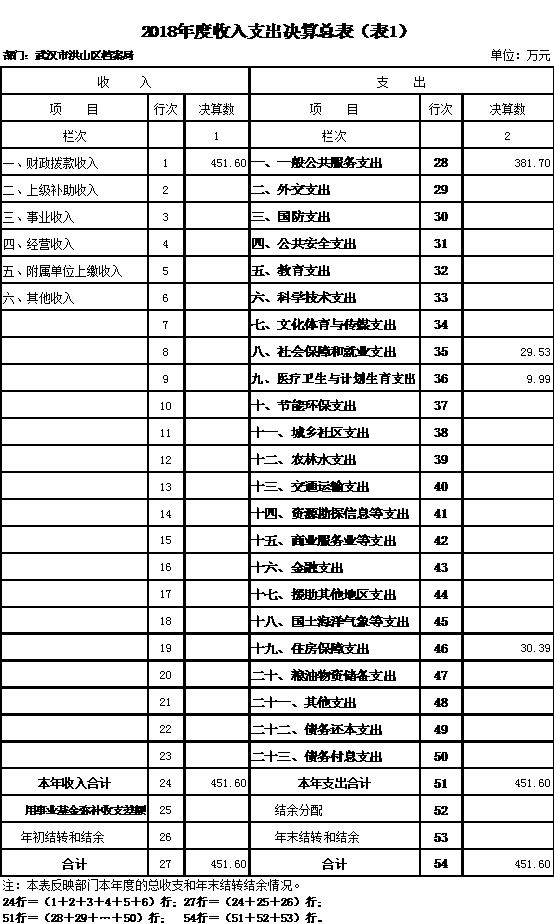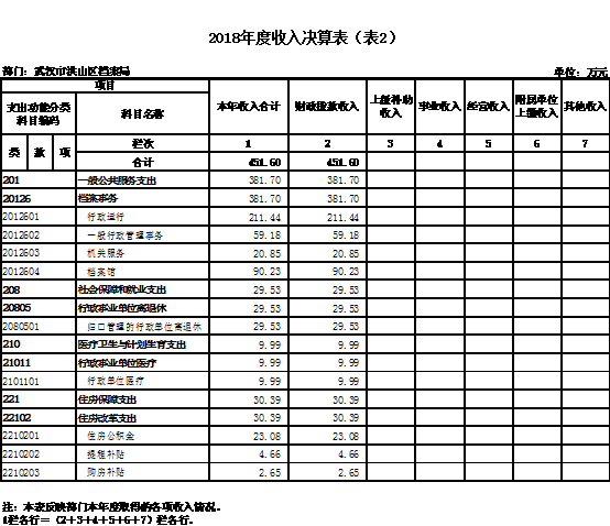 2018年度本年收入合计451.6万元。其中:财政拨款收入451.6万元,占本年收入100%;上级补助收入0万元,占本年收入%;事业收入0万元,占本年收入%;经营收入0万元,占本年收入%;附属单位上缴收入0万元,占本年收入%;其他收入0万元,占本年收入%。