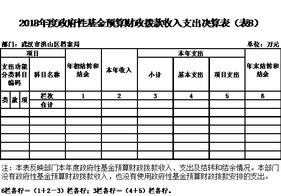 八、政府性基金预算财政拨款收入支出决算表(表8)