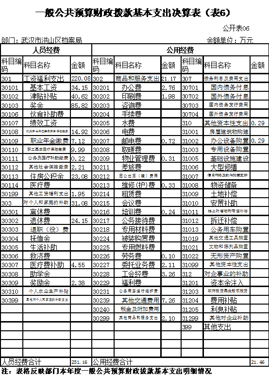 六、一般公共预算财政拨款基本支出决算表(表6)