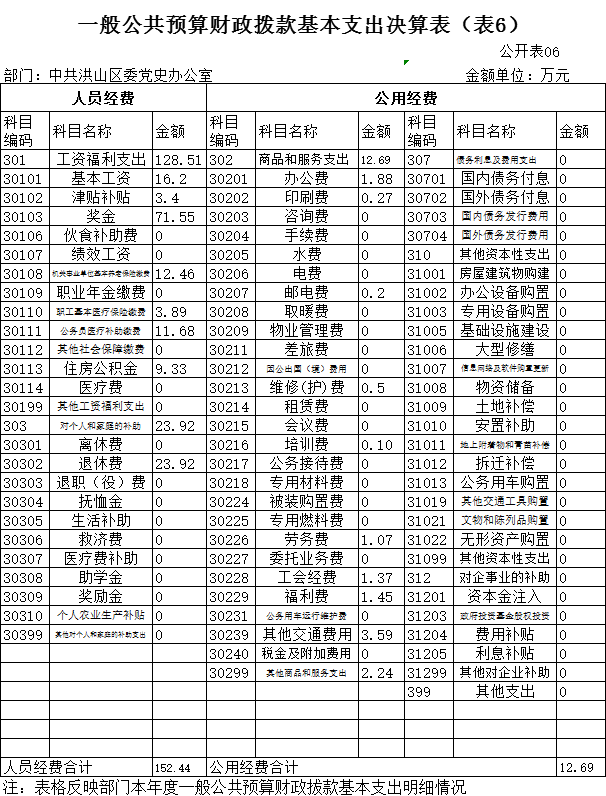 六、一般公共预算财政拨款基本支出决算表(表6)