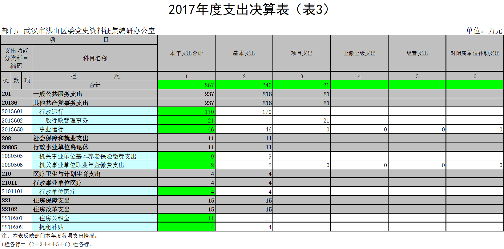 2017年度本年支出合计267万元。其中:基本支出246万元,占本年支出92%;项目支出21万元,占本年支出8%;上缴上级支出0万元,占本年支出0%;经营支出0万元,占本年支出0%;对附属单位补助支出0万元,占本年支出0%。
