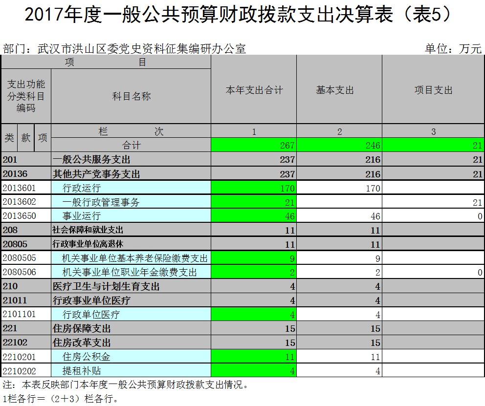 2017年一般公共预算财政拨款支出年度预算为275万元(包括年初部门预算、基本建设等专项资金、上级下达的专项转移支付资金及年初结转和结余资金等),支出决算为267万元,完成年度预算的97.09%。其中:基本支出246万元,项目支出21万元。