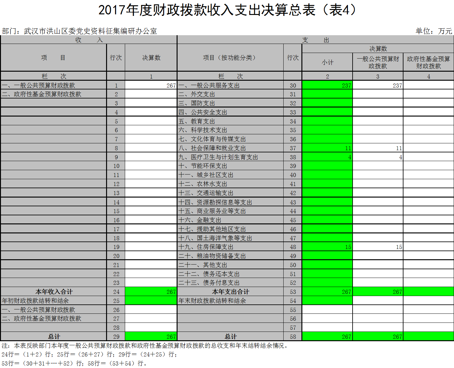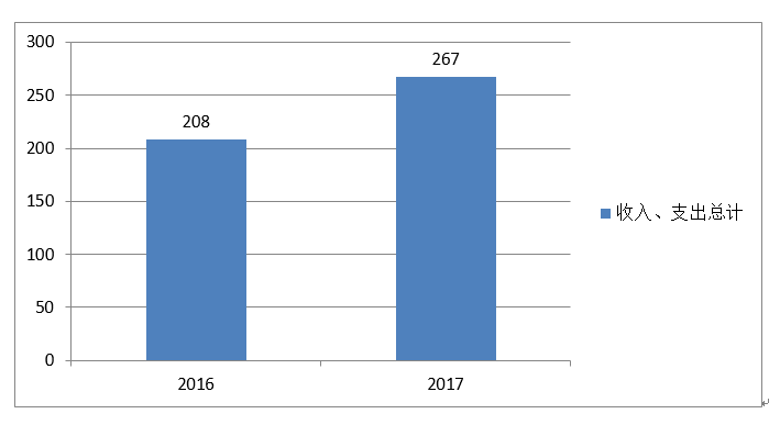 2017年度收、支总计267万元。与2016年相比,收、支总计各增加59万元,增长28.37%,主要原因是人员经费增加。
