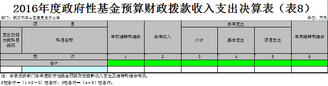 八、政府性基金预算财政拨款收入支出决算表(表8)