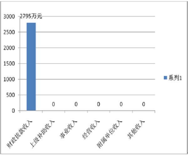 2017年度本年收入合计2,795万元。其中:财政拨款收入2,795万元,占本年收入100.00%;上级补助收入0万元,占本年收入0%;事业收入0万元,占本年收入0%;经营收入0万元,占本年收入0%;附属单位上缴收入0万元,占本年收入0%;其他收入0万元,占本年收入0%。