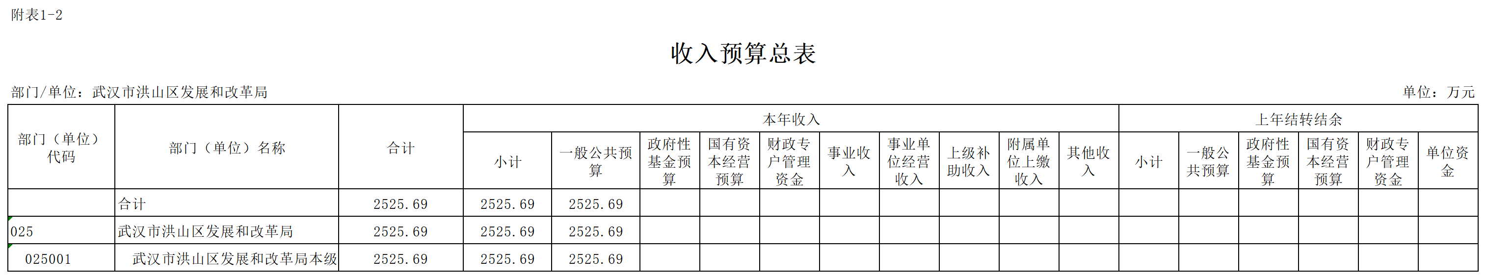 部门预算收入 2525.69   万元。其中:一般公共预算财政拨款收入  2525.69 万元,政府性基金预算财政拨款收入 0   万元,国有资本经营预算财政拨款收入  0 万元,事业收入    万元,上级补助收入 0万元,附属单位上缴收入 0   万元,事业单位经营收入 0 万元,其他收入 0 万元;用事业基金弥补收支差额 0 万元、上年结转 0   万元。