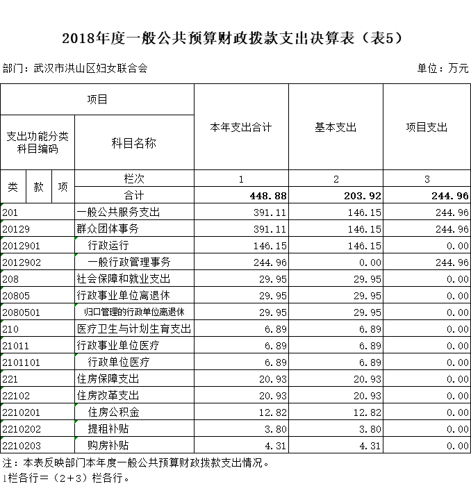 2.一般公共服务(类) 妇联事务(款)一般行政管理事务(妇联),反映行政单位(包括实行公务员管理的事业单位)未单独设置项级科目的其他项目支出。