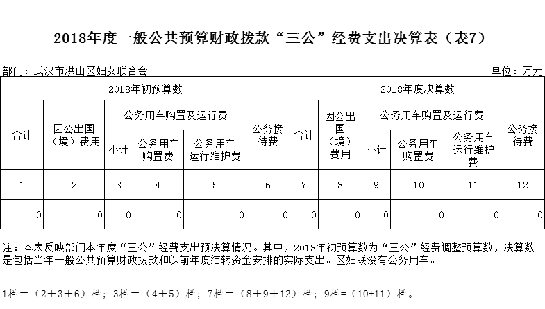 2018度“三公”经费财政拨款年初预算数为 0 万元,支出决算为 0 万元,为预算的 0 %,其中: