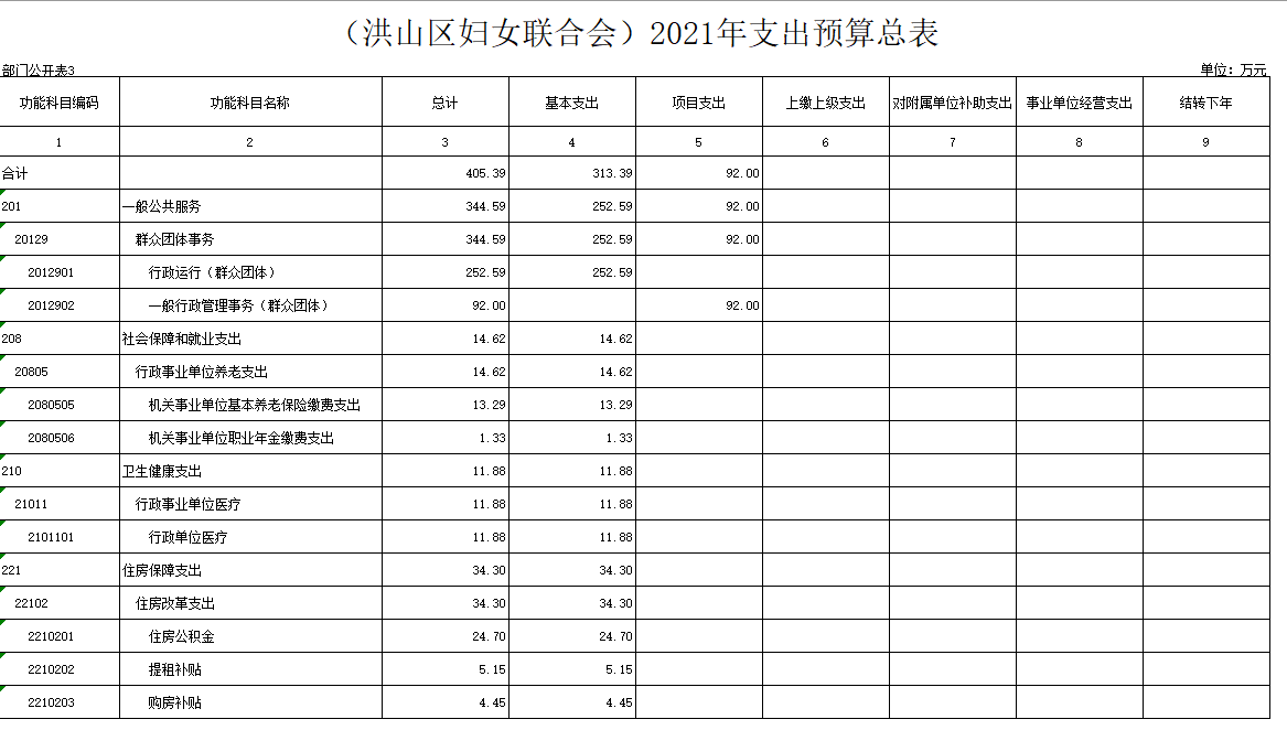 名 称:(黄色网址 妇女联合会)2021支出预算总表