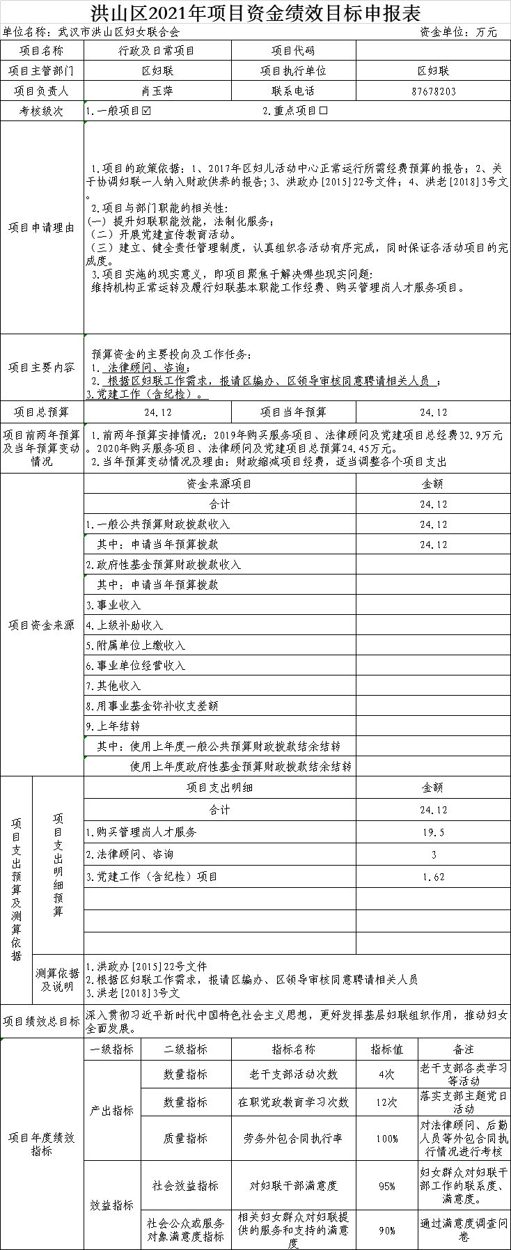 名 称:黄色网址 妇联2021年项目资金绩效目标申报表