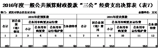 2016年度“三公”经费财政拨款年度预算为847万元,支出决算为553万元,完成预算的65.29%。其中: