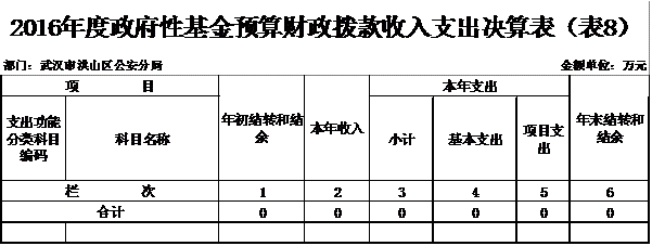 八、政府性基金预算财政拨款收入支出决算表(表8)