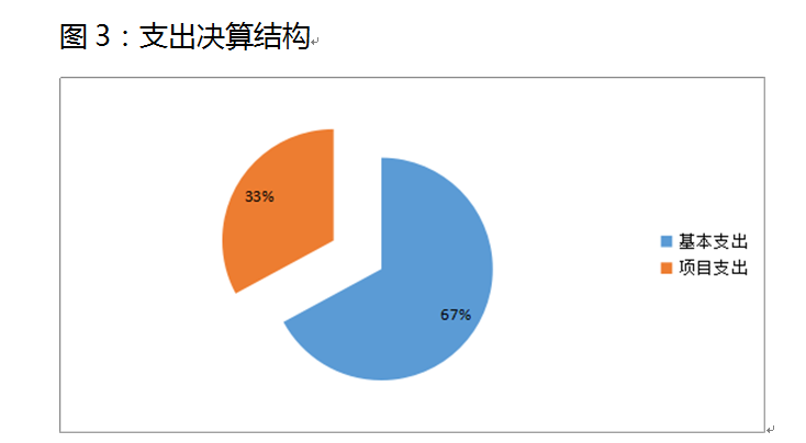 3.社会保障和就业支出(类)。年度预算为2383万元,支出决算为1367万元,完成年度预算的57.37%,支出决算数小于年度预算数的主要原因是基本养老保险和职业年金单位部分未缴纳。