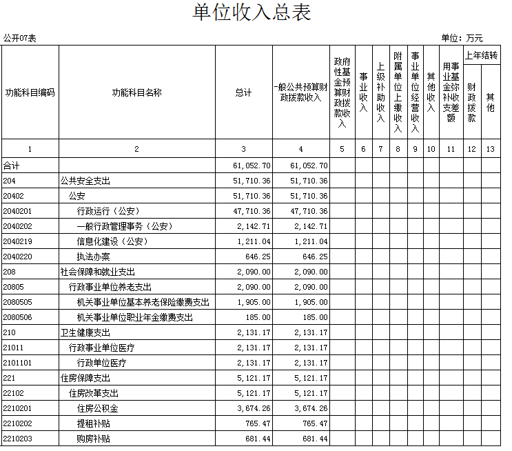 名 称:武汉市公安局黄色网址 分局2021年收入预算总表
