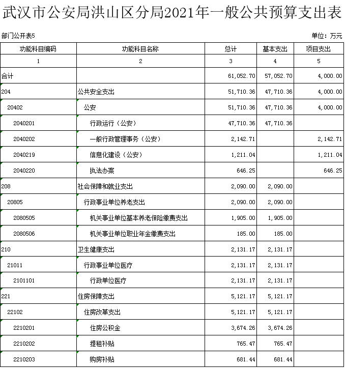 名 称:武汉市公安局黄色网址 分局2021年一般公共预算支出表