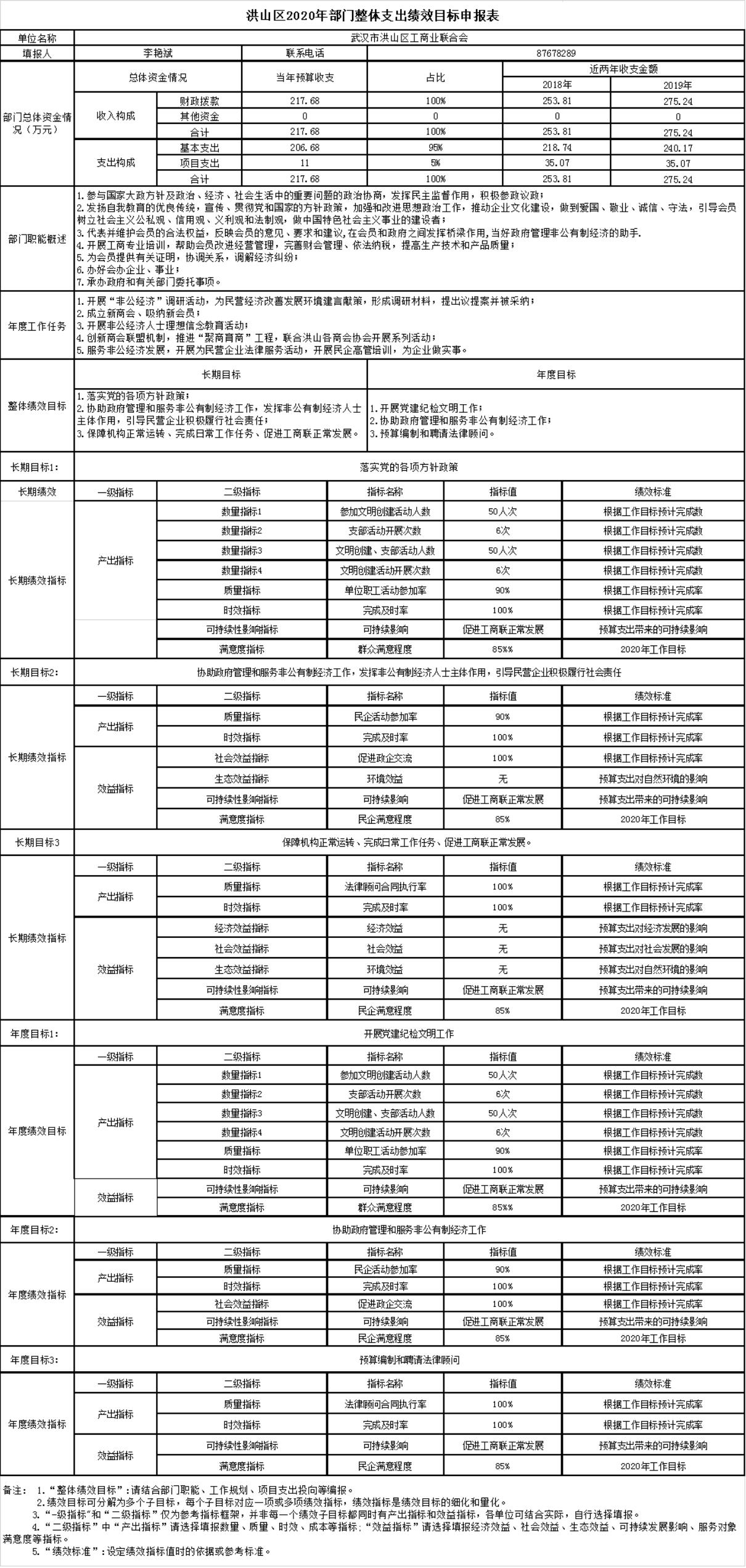 名 称:黄色网址 工商业联合会2020年部门整体支出绩效目标申报表