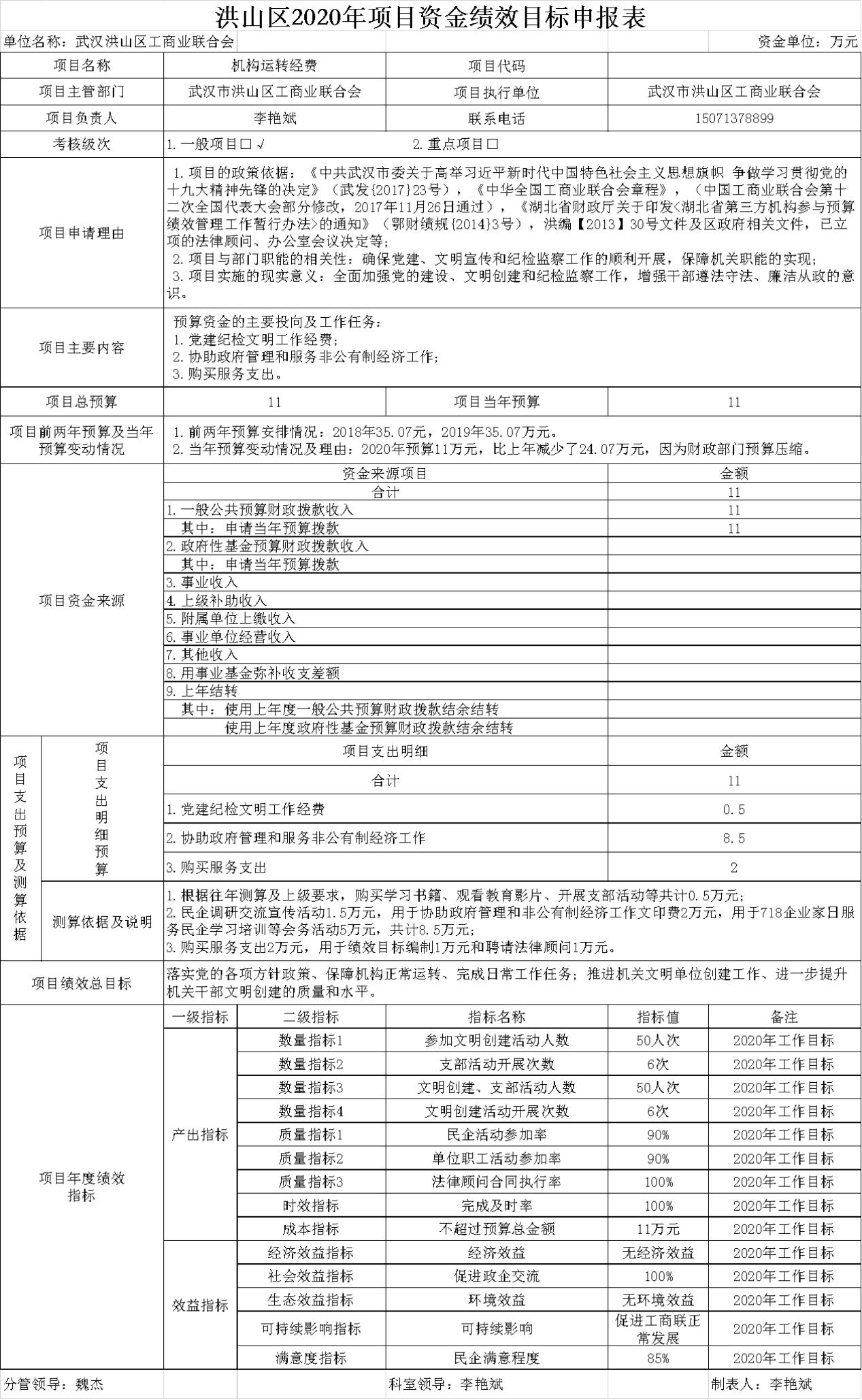 名 称:黄色网址 工商业联合会2020年项目资金绩效目标申报表