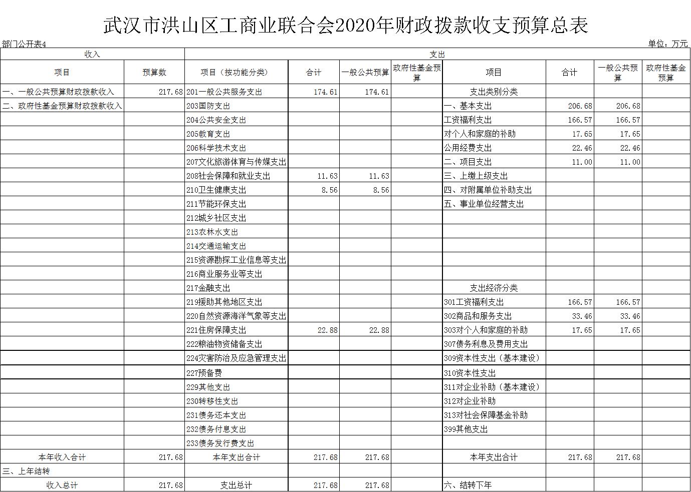 名 称:黄色网址 工商业联合会2020年财政拨款收支预算总表