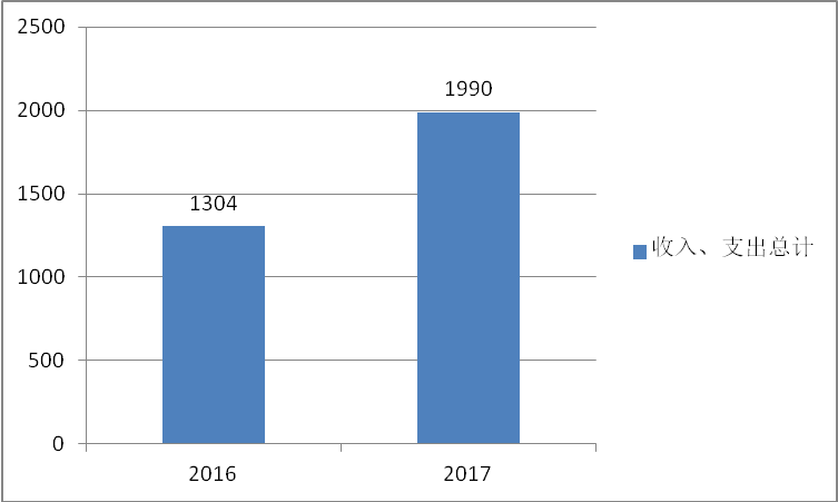 2017年度收、支总计1,990万元。与2016年相比,收、支总计各增加686万元,增长52.61%,主要原因是基本支出增加。