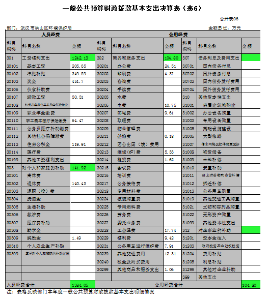 六、一般公共预算财政拨款基本支出决算表(表6)
