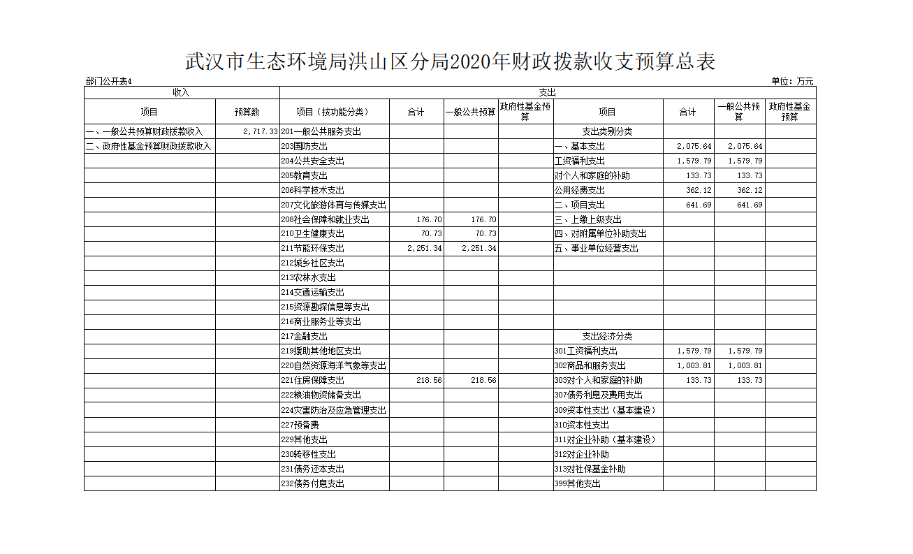 名 称:武汉市生态环境局黄色网址 分局2020年财政拨款收支预算总表