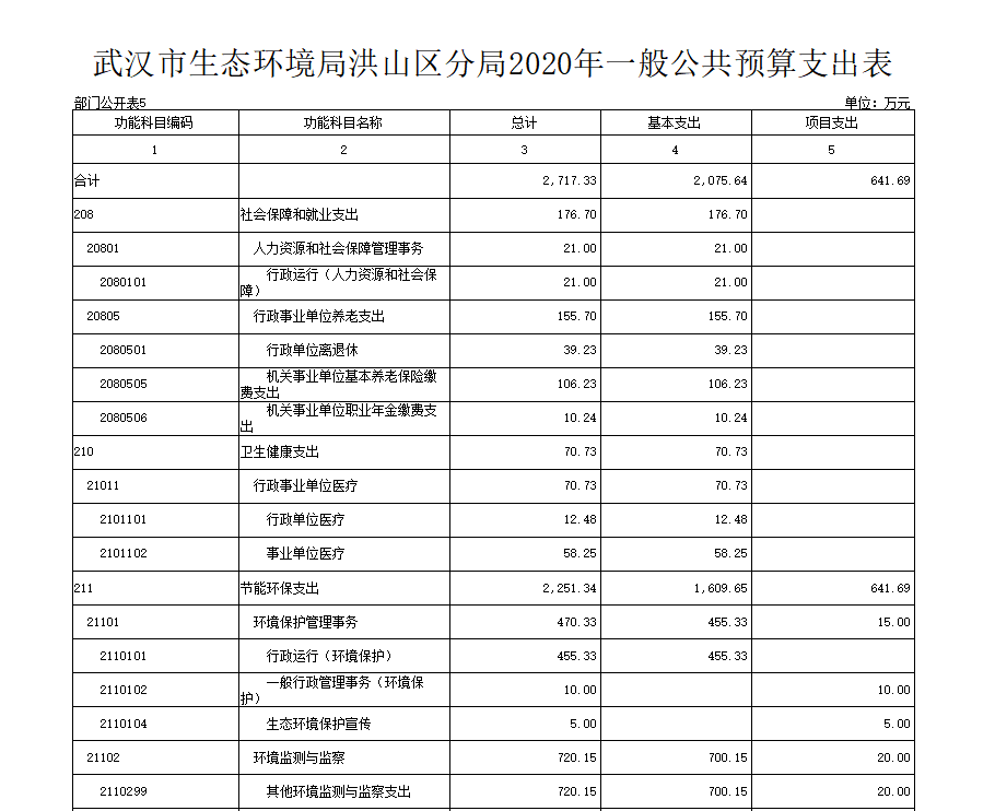 名 称:武汉市生态环境局黄色网址 分局2020年一般公共预算支出表 |