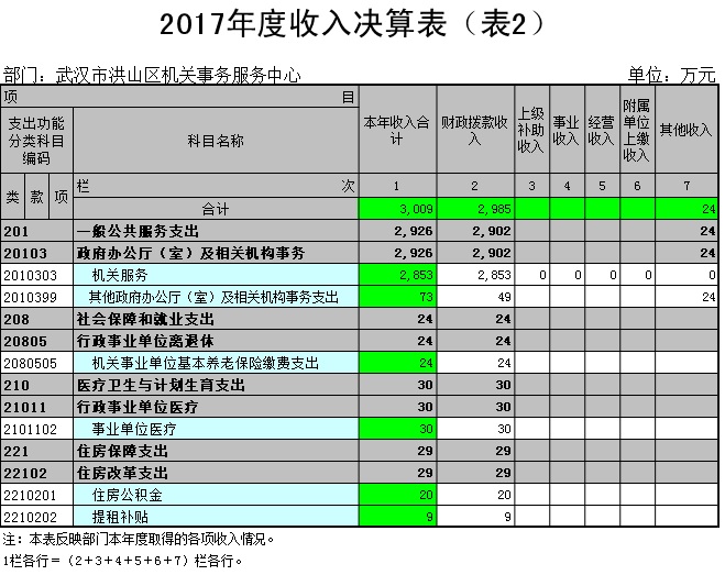 2017年度本年收入合计3,009万元。其中:财政拨款收入2,985万元,占本年收入99.20%;上级补助收入0万元,占本年收入0.00%;事业收入0万元,占本年收入0.00%;经营收入0万元,占本年收入0.00%;附属单位上缴收入0万元,占本年收入0.00%;其他收入24万元,占本年收入0.80%。