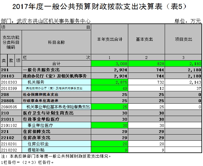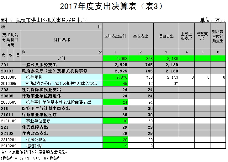 2017年一般公共预算财政拨款支出年度预算为3,007万元(包括年初部门预算、基本建设等专项资金、上级下达的专项转移支付资金及年初结转和结余资金等),支出决算为3,008万元,完成年度预算的100.01%。其中:基本支出828万元,项目支出2,180万元。