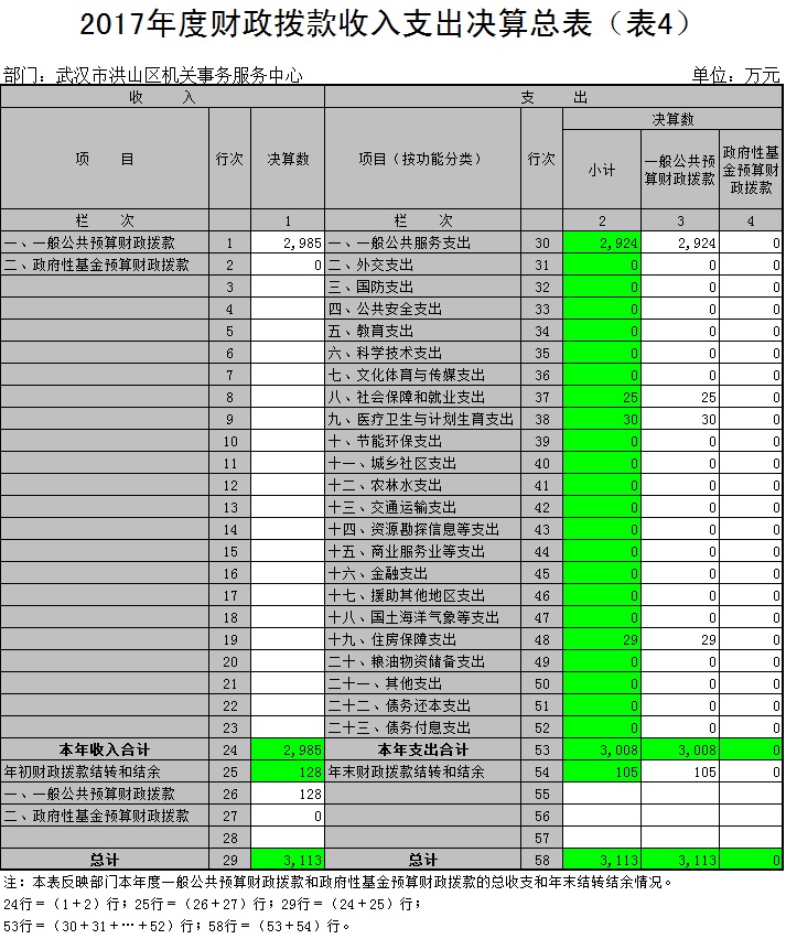 四、财政拨款收入支出决算总表(表4)