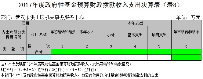 八、政府性基金预算财政拨款收入支出决算表(表8)