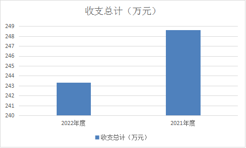 2022年度收、支总计均为243.34万元。与2021年度相比,收、支总计各减少5.27万元,下降2.1%,主要原因是缩减公用经费开支。