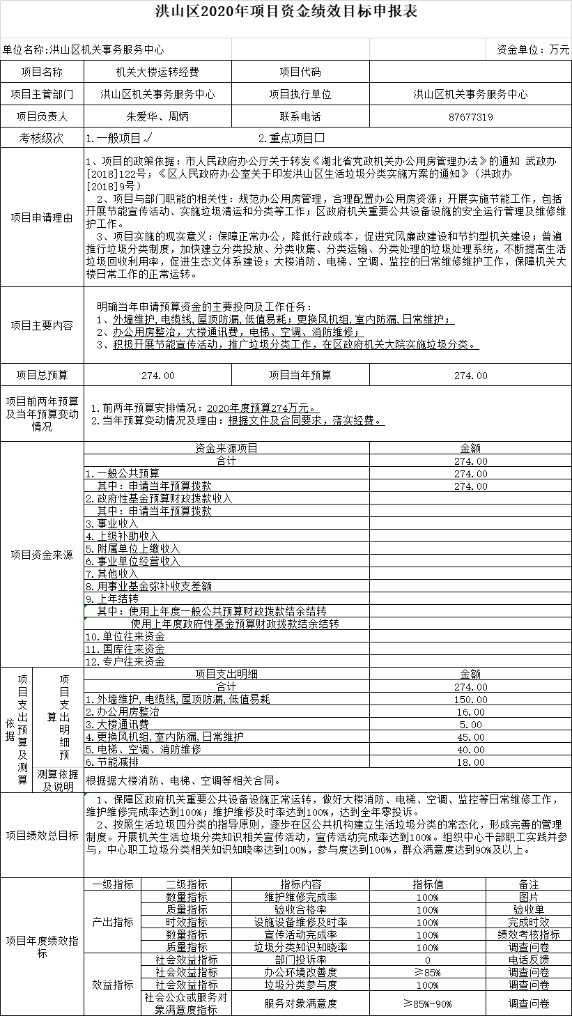 名 称:黄色网址 2020年项目资金绩效目标申报表(机关大楼运转经费)
