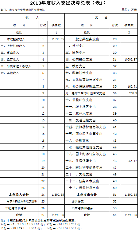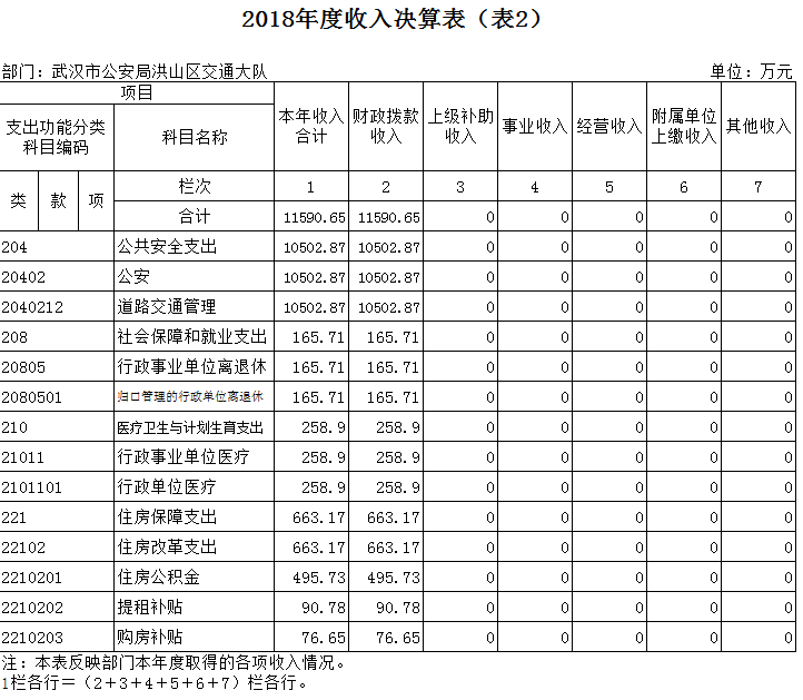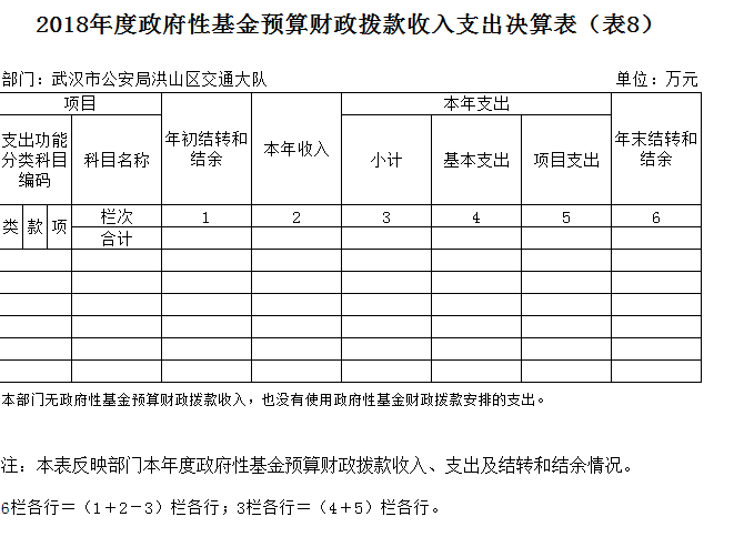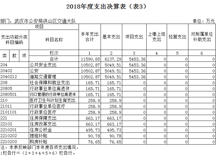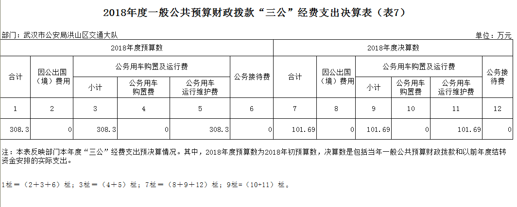 名 称:2018年度武汉市公安局黄色网址 交通大队决算 |