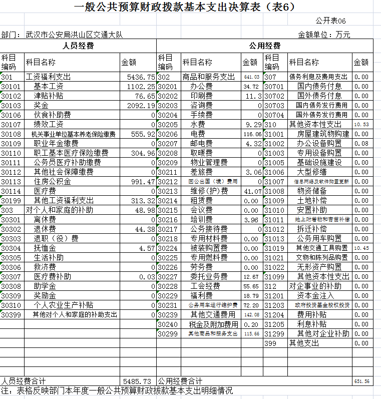 第二部分 武汉市公安局黄色网址 交通大队2018年度部门决算表