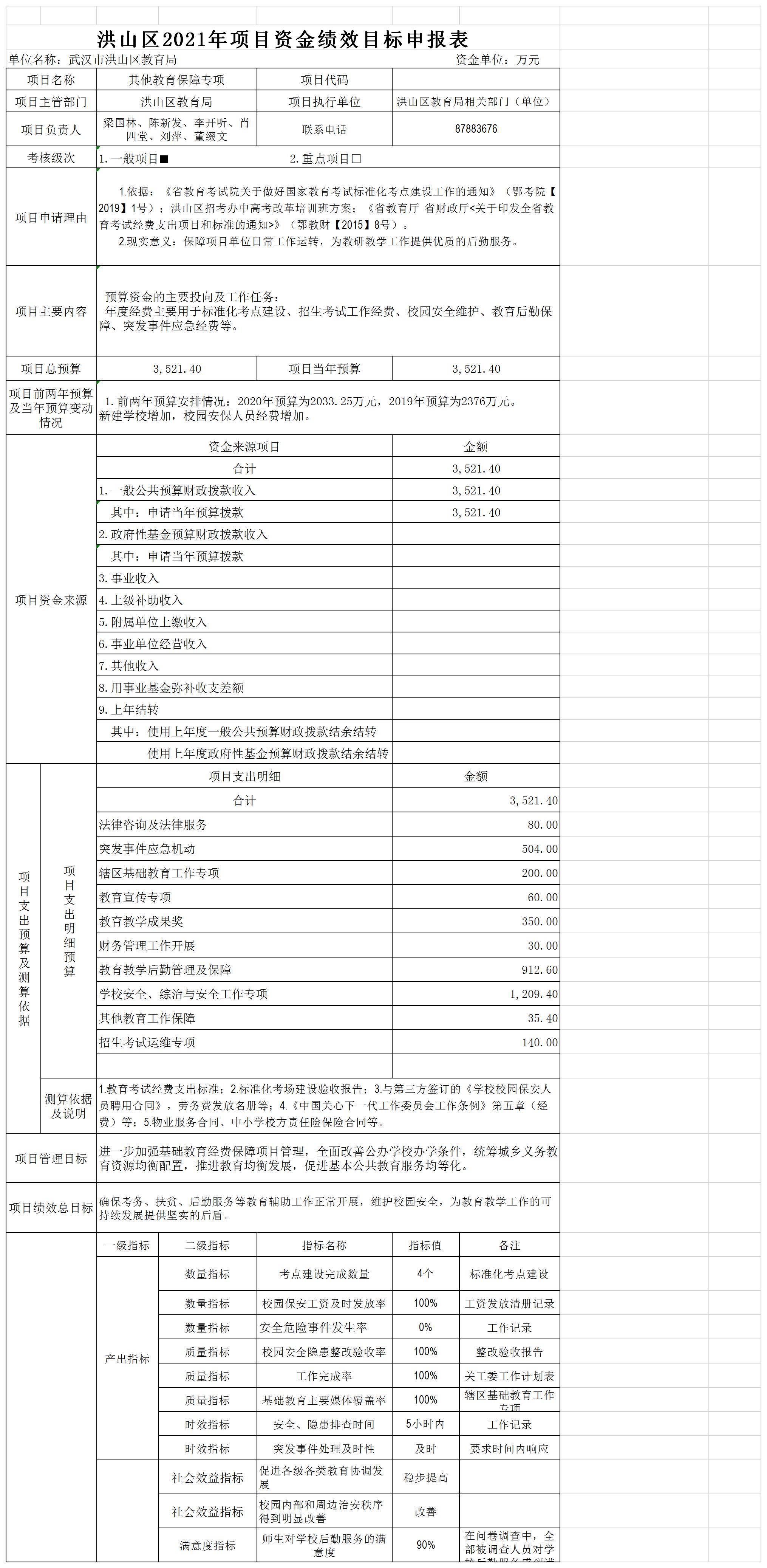 名 称:黄色网址 教育局2021年项目资金绩效目标申报表