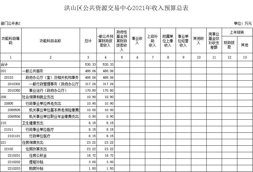 名 称:黄色网址 公共资源交易中心2021年收入预算总表