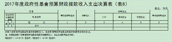 八、政府性基金预算财政拨款收入支出决算表(表8)