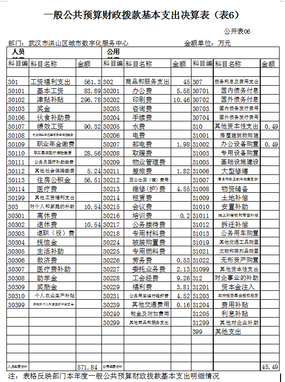 六、一般公共预算财政拨款基本支出决算表(表6)