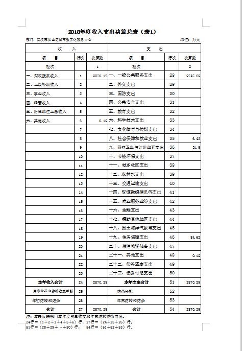 2018年度收、支总计2870.29万元。与2017年相比,收、支总计各增加732.29万元,增长34.25%,主要原因是项目支出预算增加。